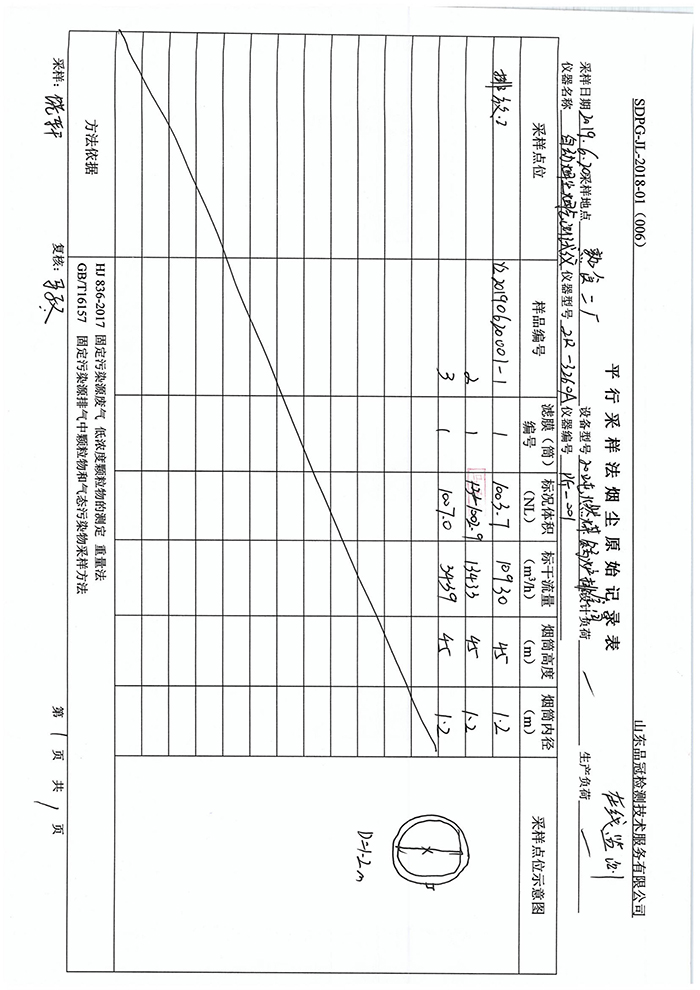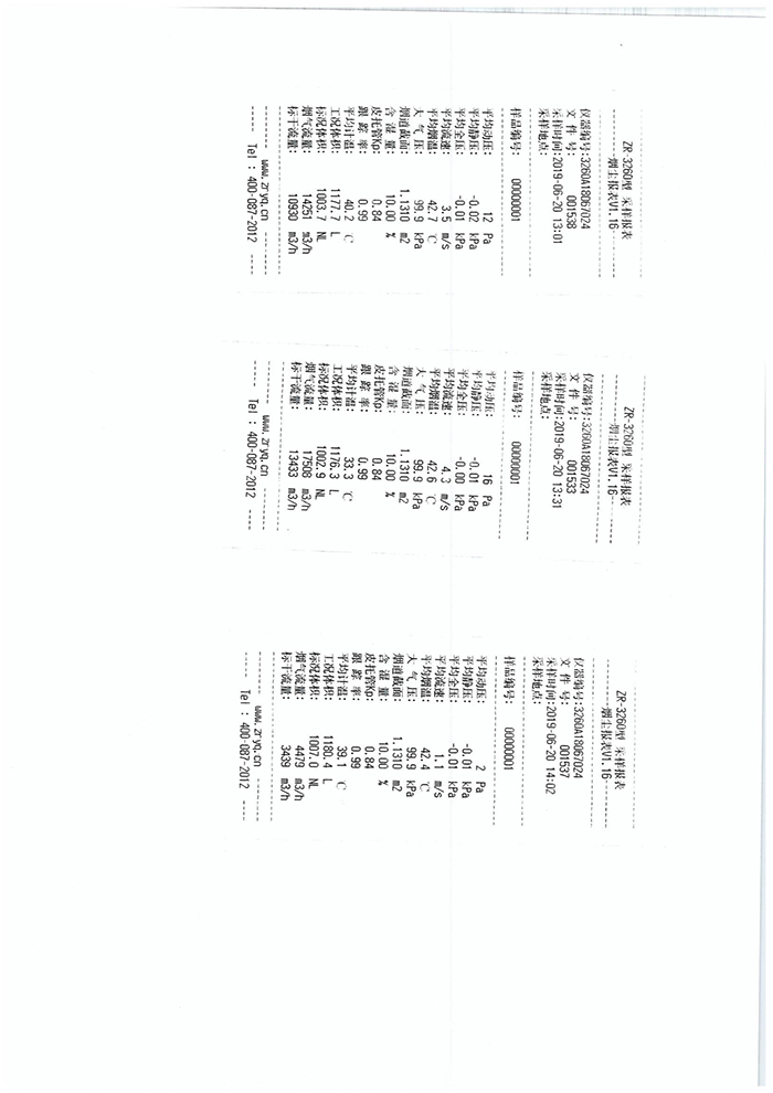 食品二厂 20吨锅炉第二季度在线比对报告